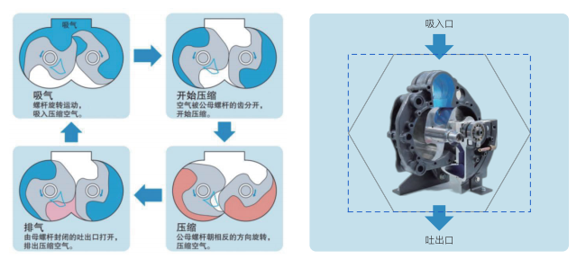 雌雄兩個轉(zhuǎn)子構(gòu)成,非接觸旋轉(zhuǎn)無磨損,壽命長。